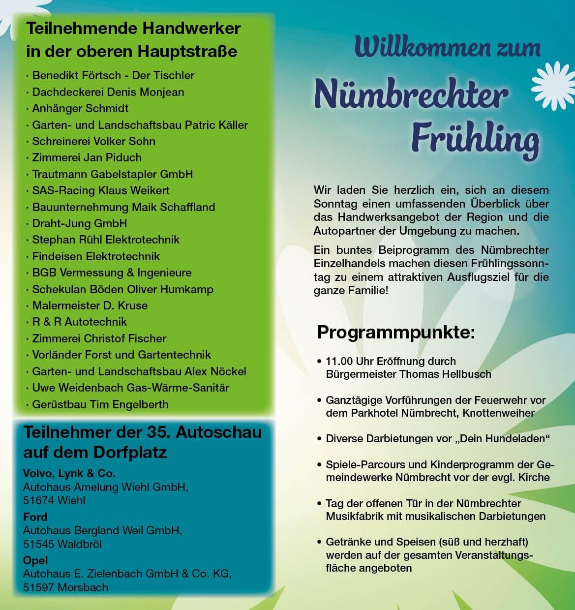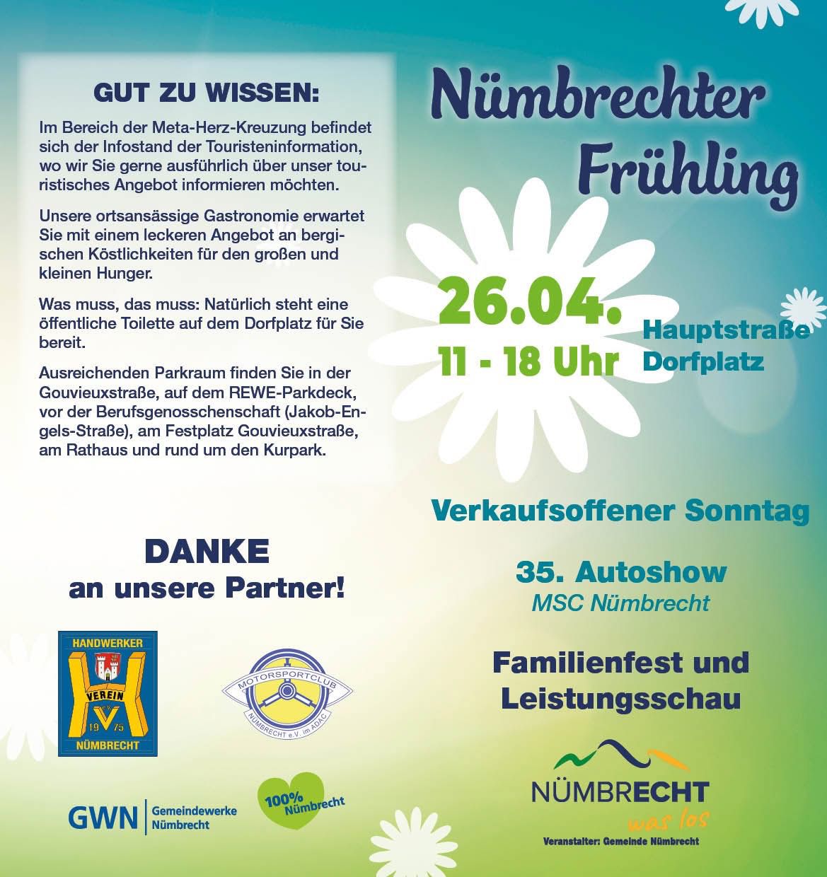 Die Freiwillige Feuerwehr Nümbrecht beteiligt sich beim Nümbrechter Frühling am 26.04.2026 von 11:00 - 18:00 Uhr.